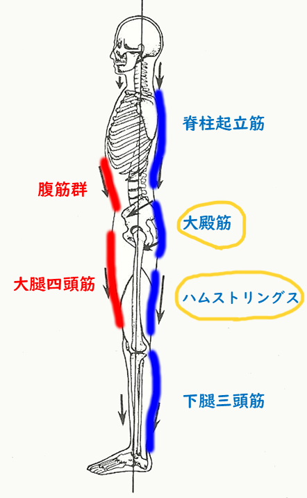 筋肉的に、大殿筋、下腿三頭筋を連携をとっています。